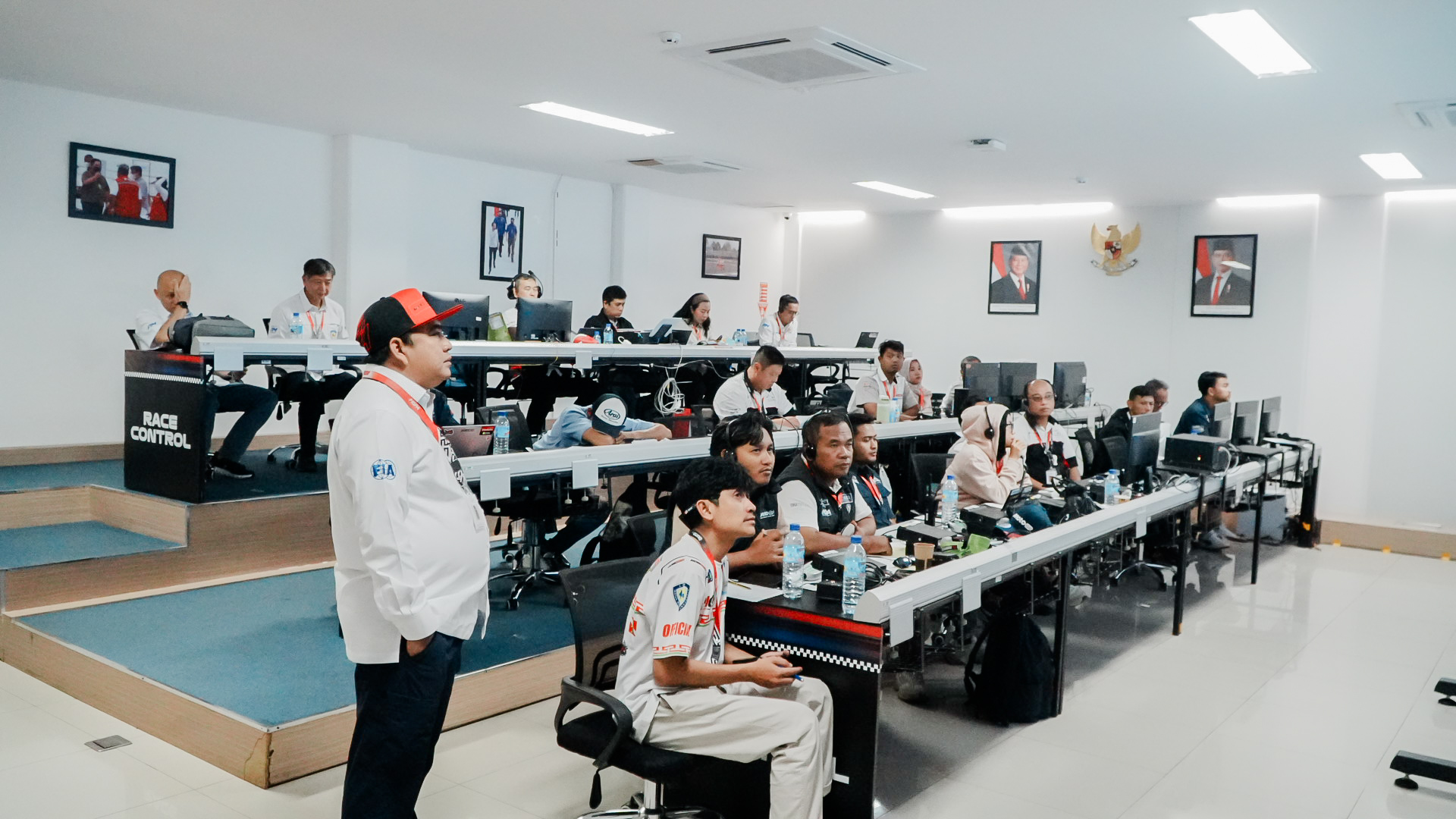 Didampingi oleh jajaran manajemen MGPA, Ananda Mikola meninjau secara langsung bagaimana tim operasional bekerja di ruang Race Control, yang menjadi pusat kendali utama selama kegiatan balap berlangsung. Dari ruangan inilah seluruh jalannya lomba dipantau secara real time melalui deretan layar beresolusi tinggi yang menampilkan setiap sudut lintasan.