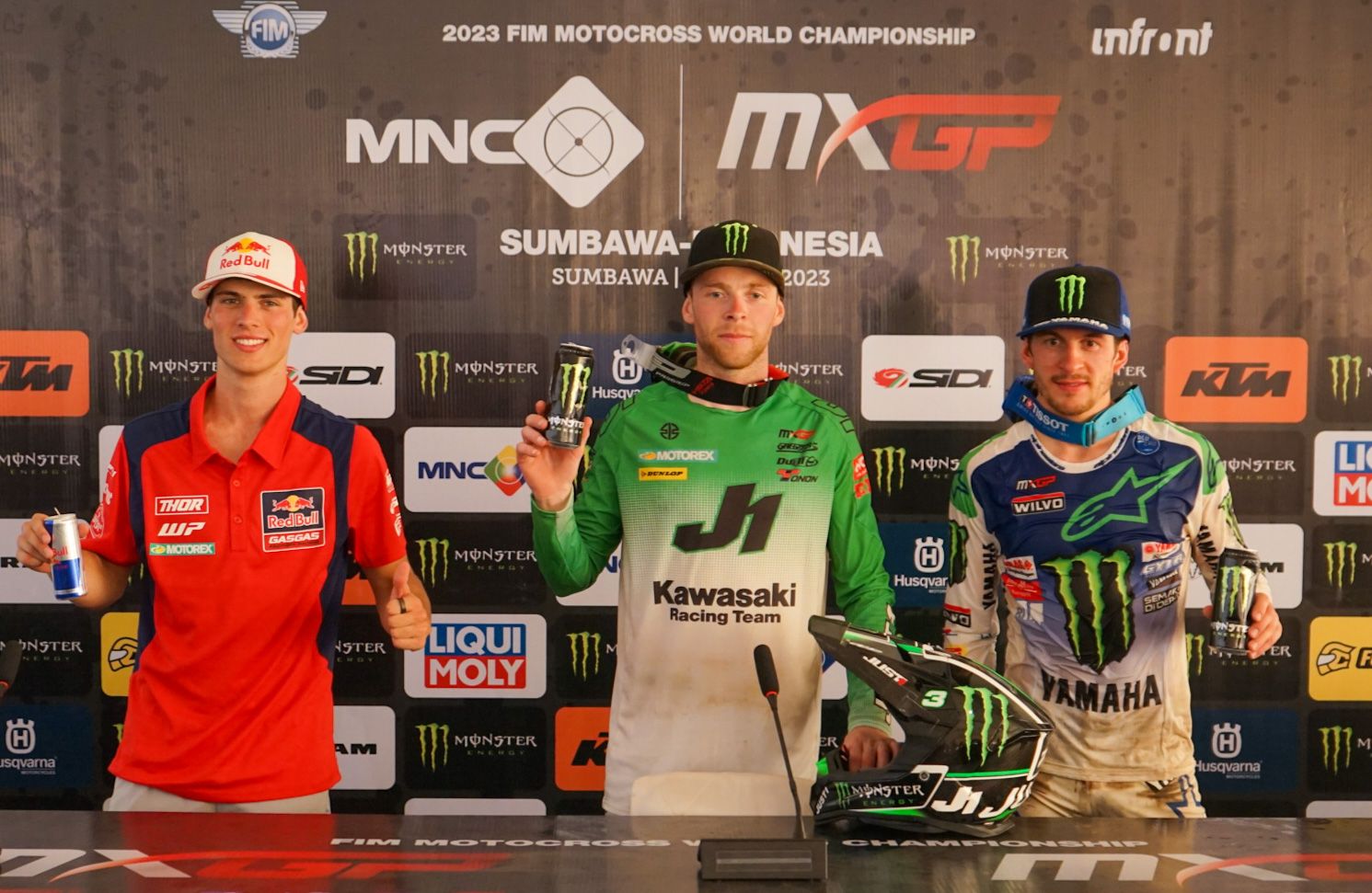Sementara di posisi dua diraih Jeremy Seewer tim Monster Energy Yamaha dan posisi ketiga diraih oleh Jorge Prado dari tim Redbull.